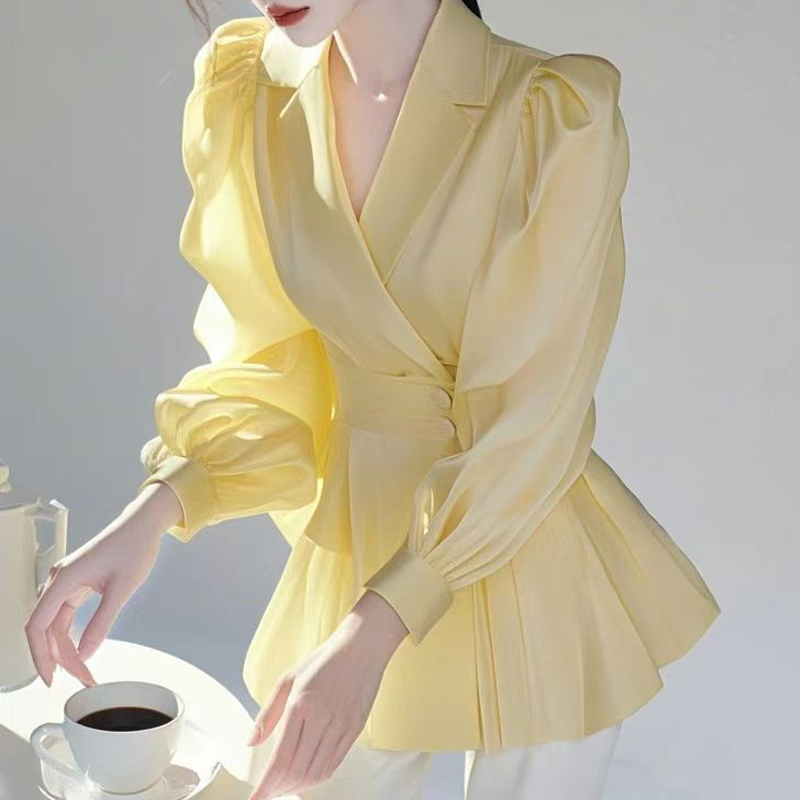 Temperament new style light luxury yellow waist waist spring and autumn sleeve shirt