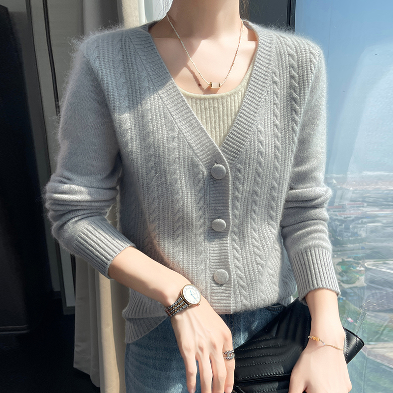 Autumn and winter new style elegant V-neck knitted cardigan sleeve knitted sweater