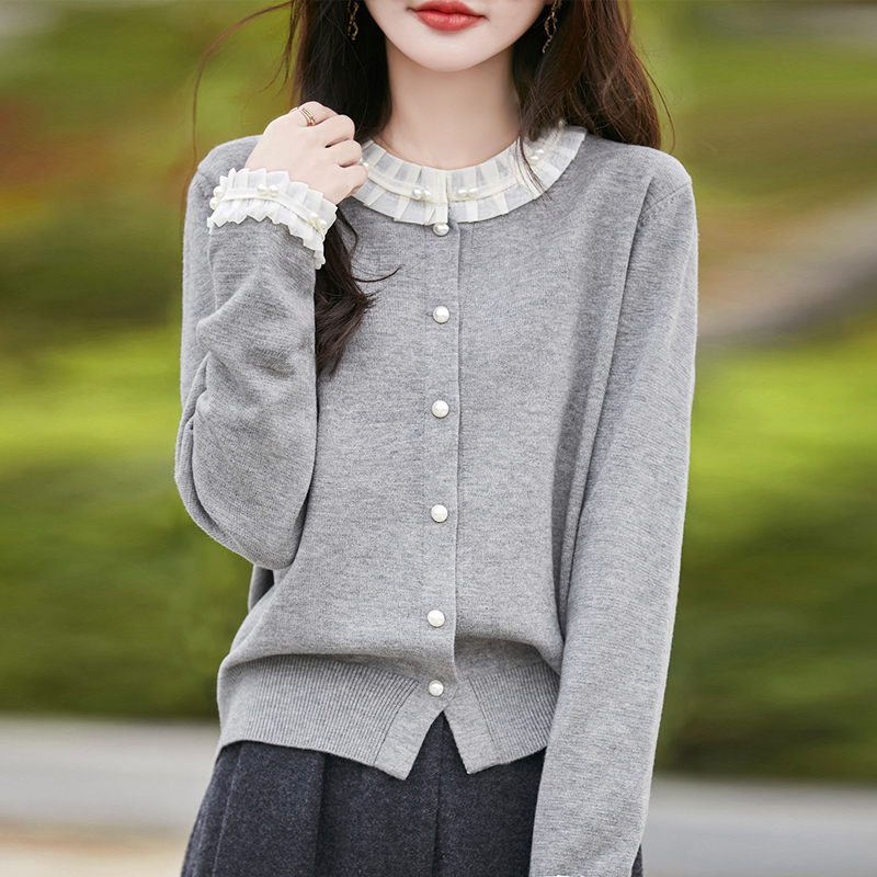 Contrast-color lace collar knitted blouse autumn and winter sleeve knitted sweater