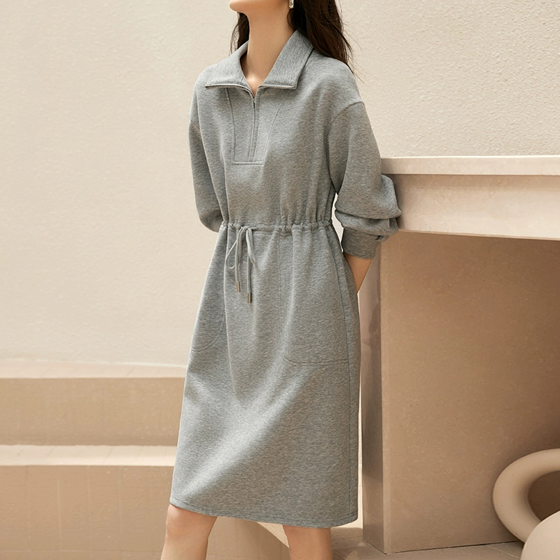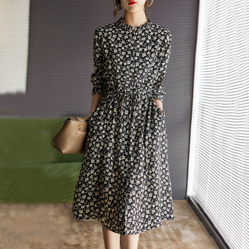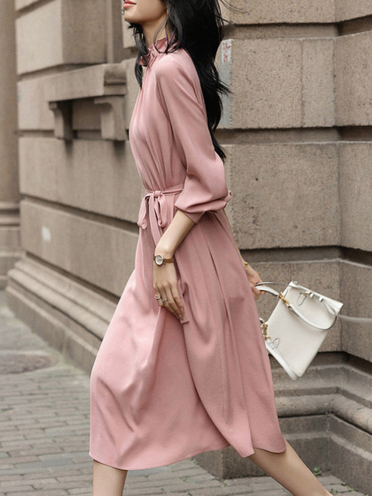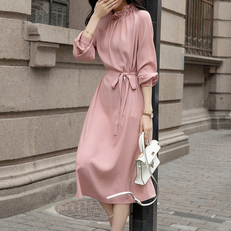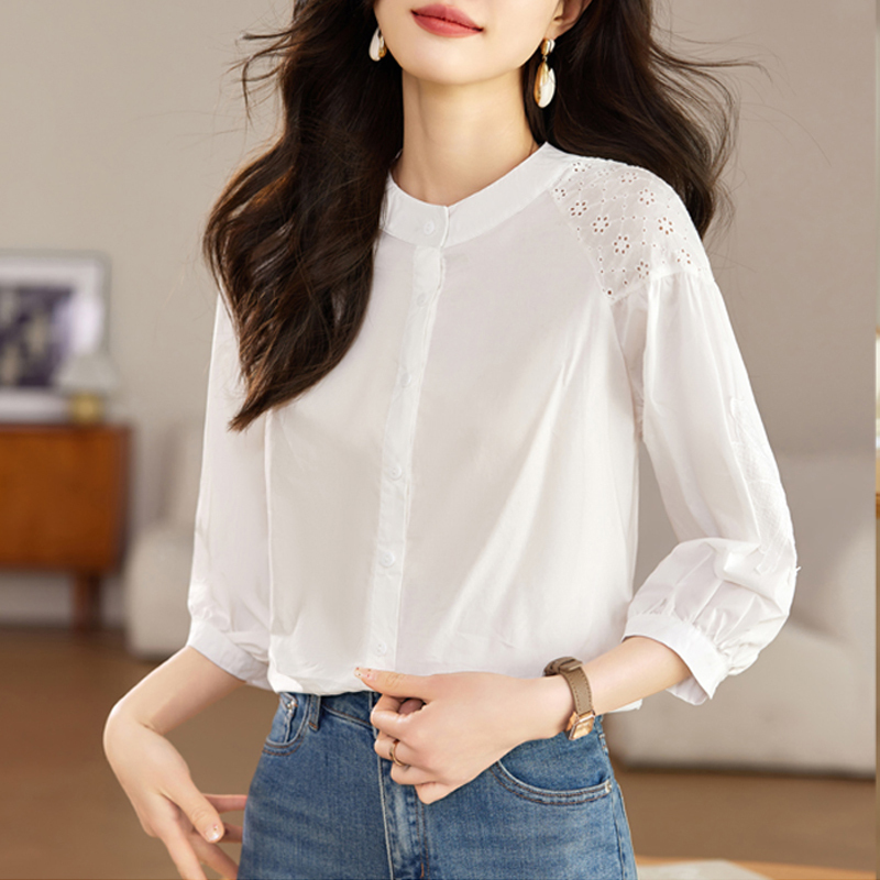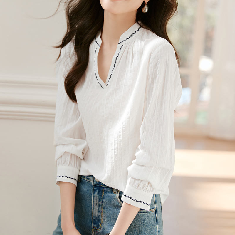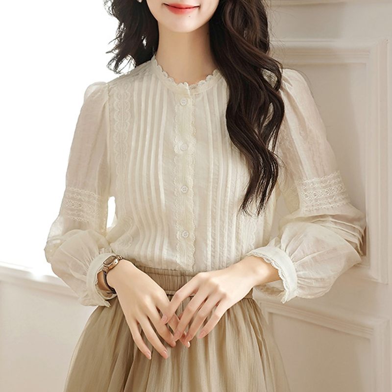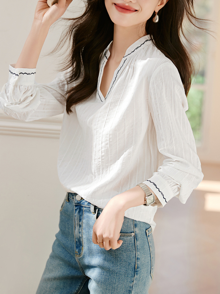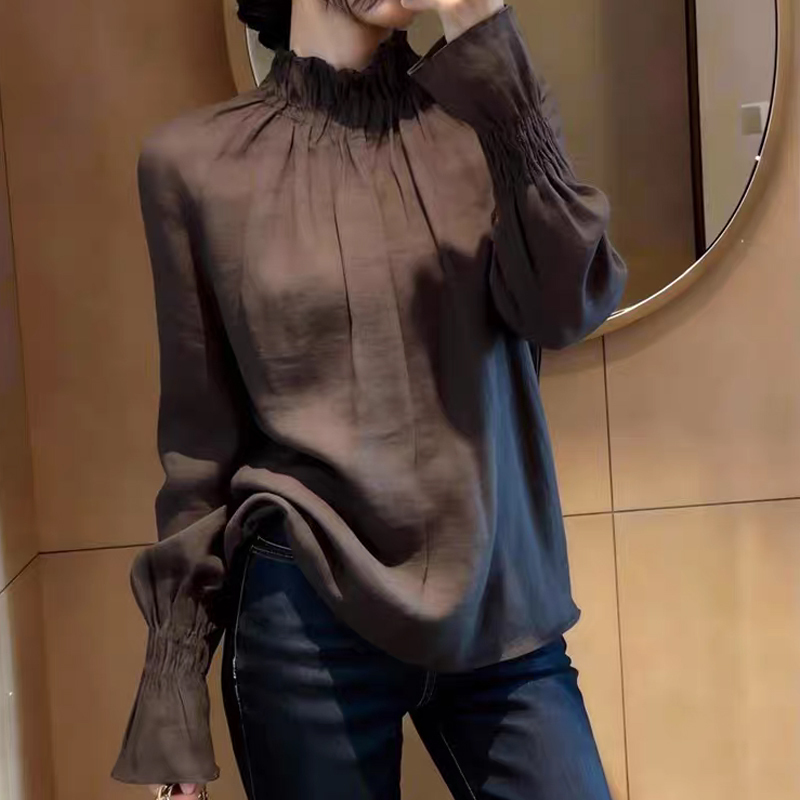 New spring and autumn women's pleated neckline small upright collar pullover sleeve shirt