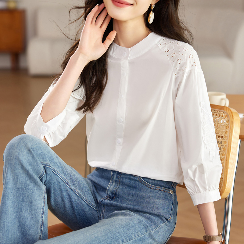 Elegant white waist A-shaped arrangement to show thin sleeves women's shirt