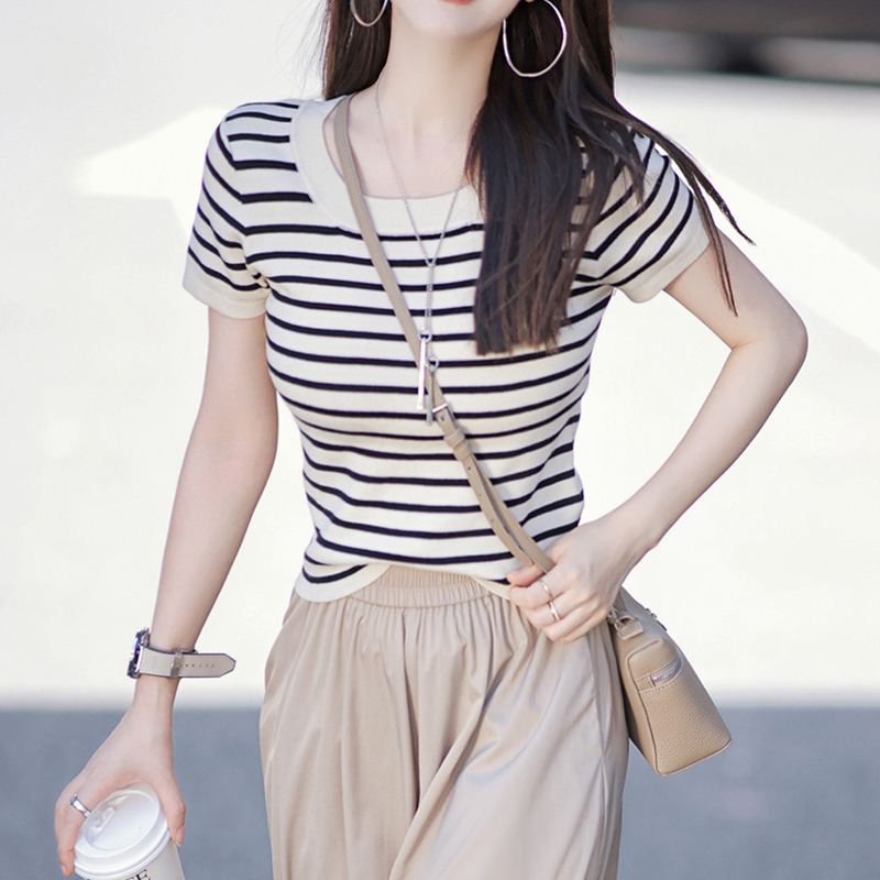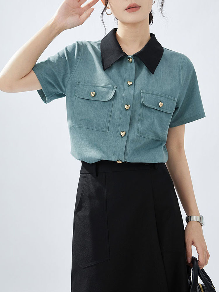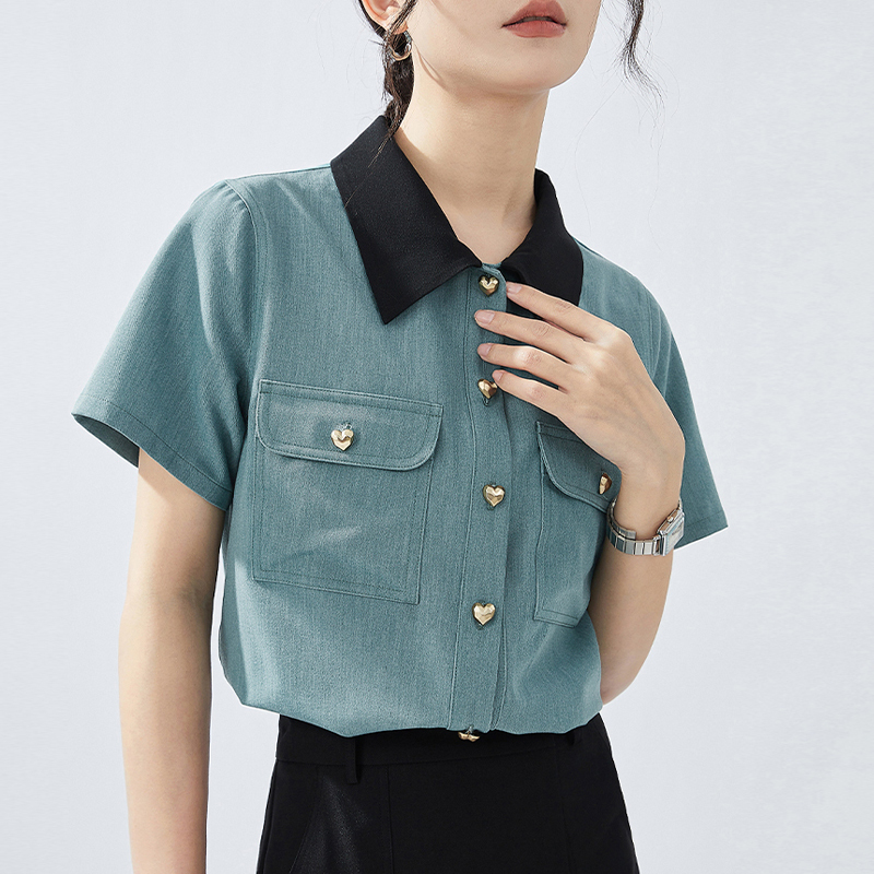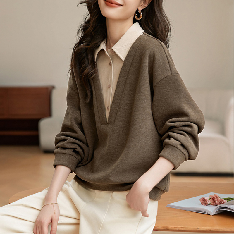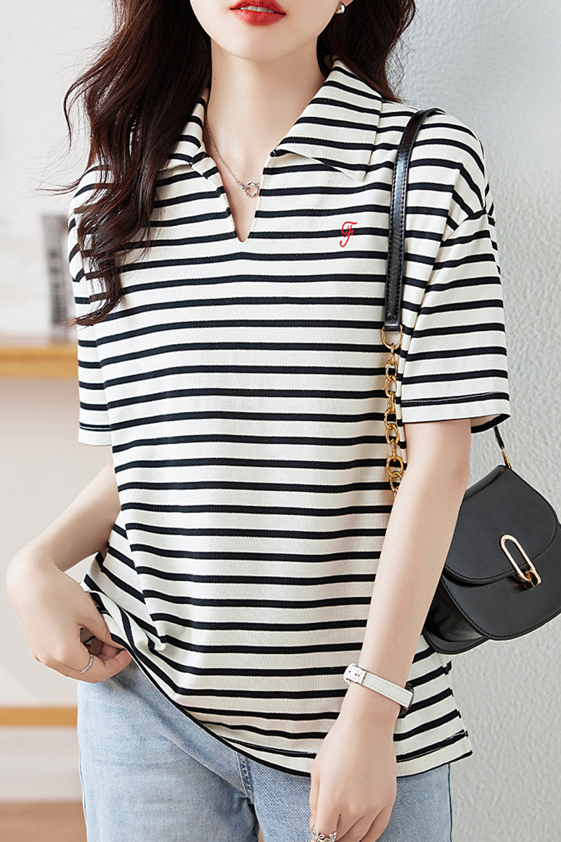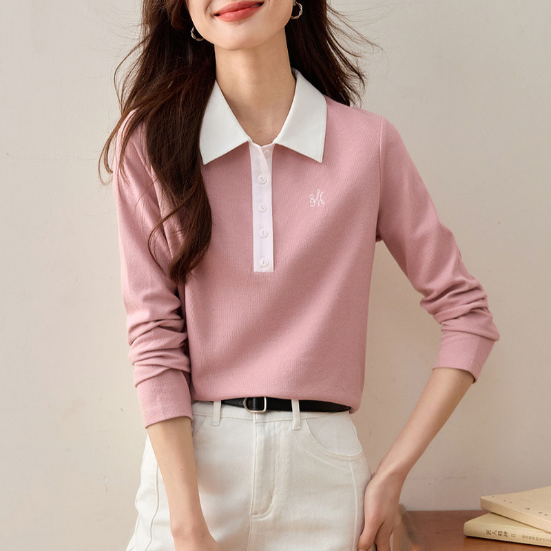 New casual contrasting lapel pullover sleeves women's t-shirt