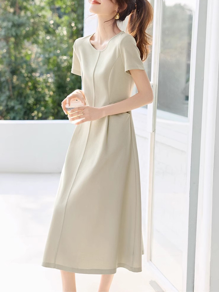 Waist, high waist, mesh stitching, large swing skirt, contrasting square collar dress