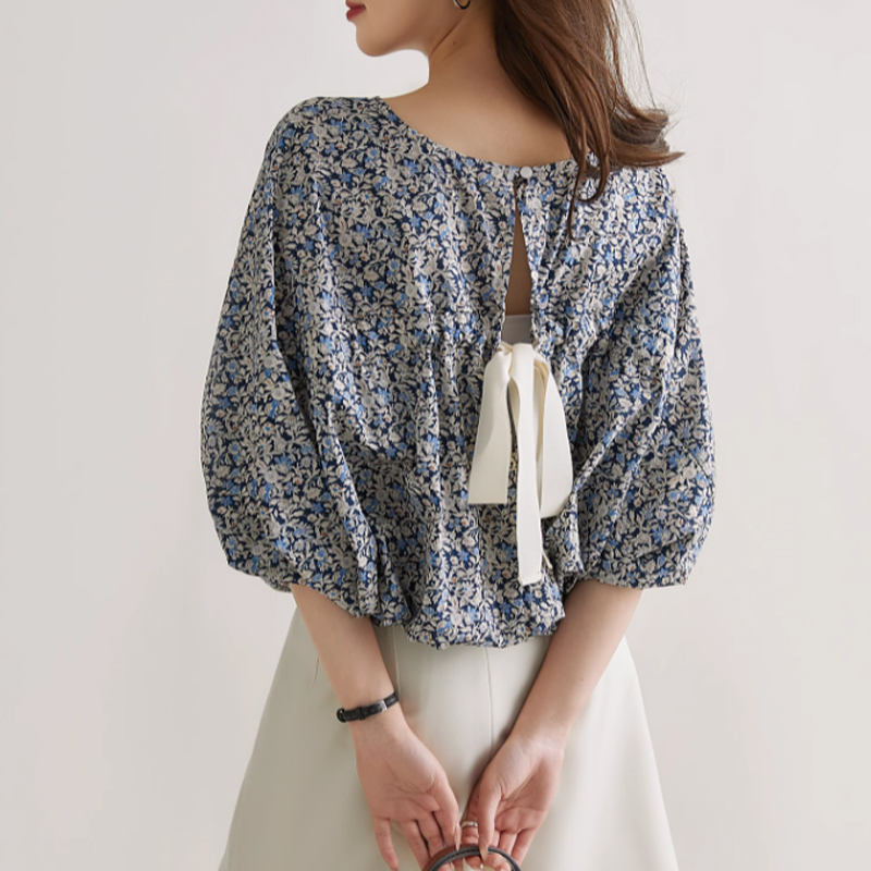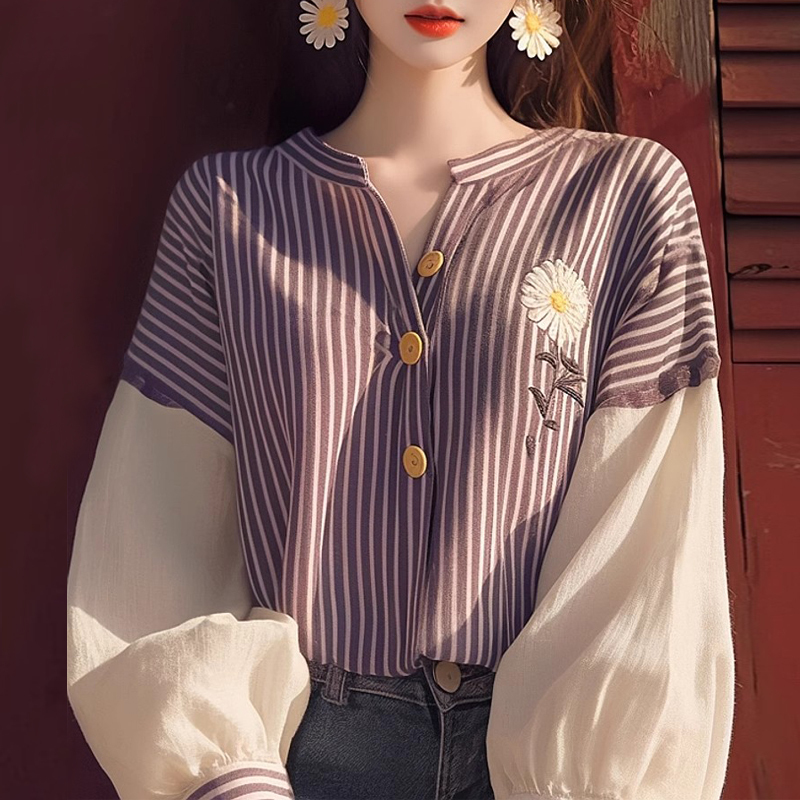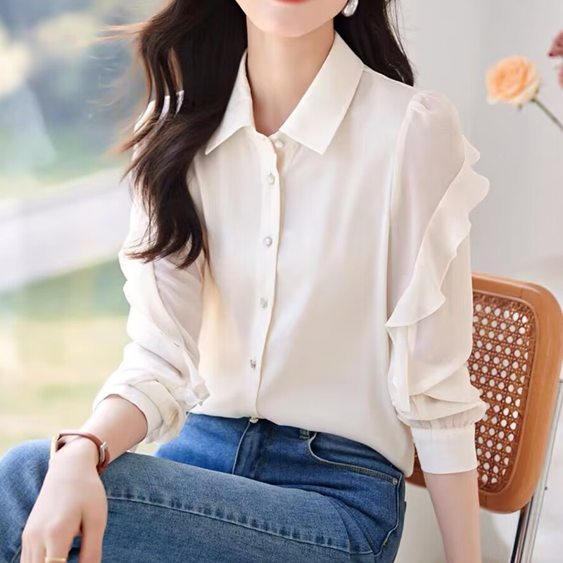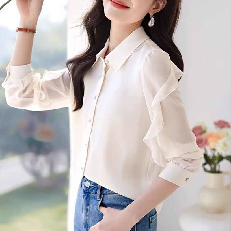 Design a new long-sleeved blouse with lotus leaf sleeves
