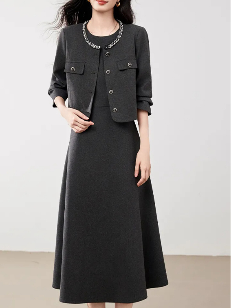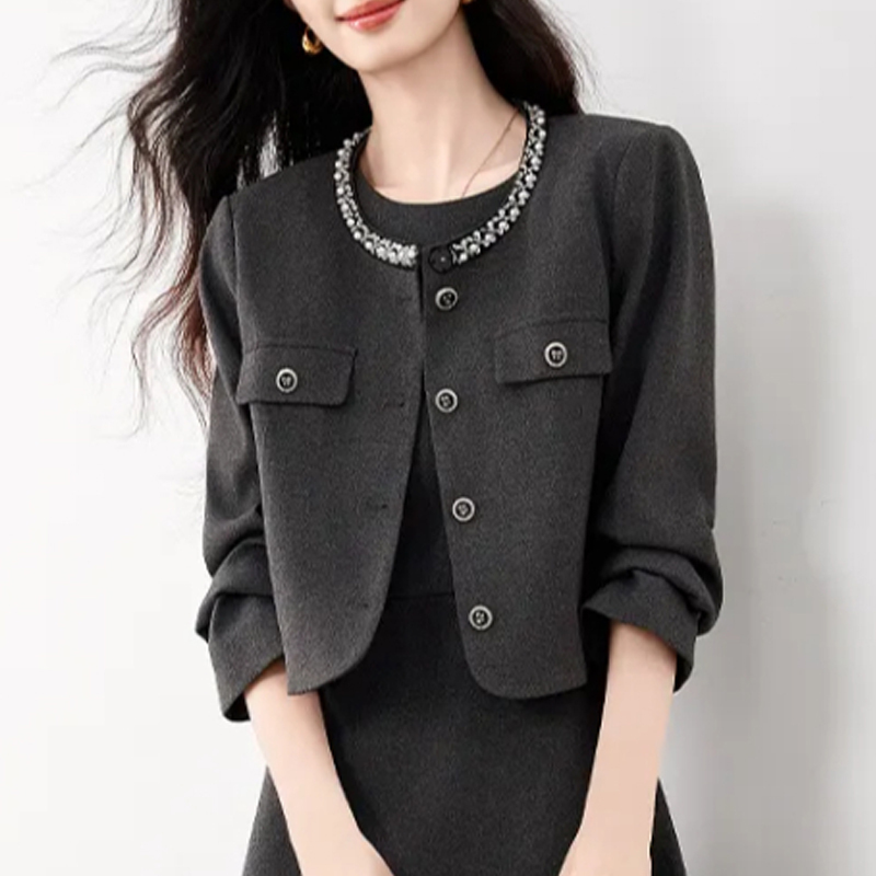 Elegant age-reducing diamond-diamond collar short women's autumn and winter coat top