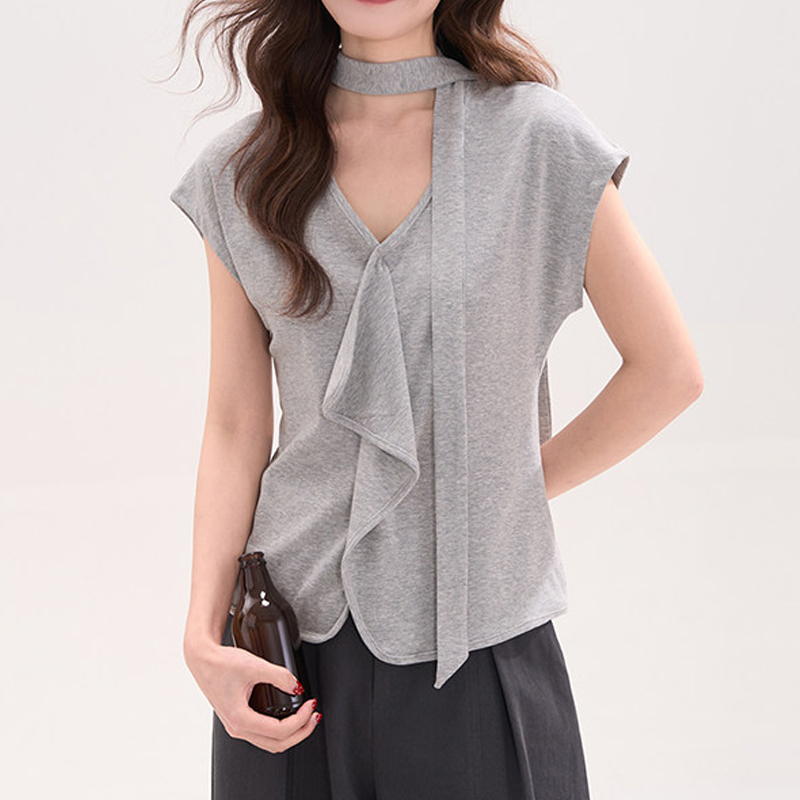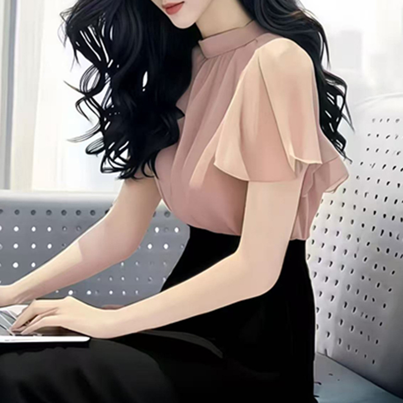 Summer ruffled new V-neck and silk short-sleeved women's shirt
