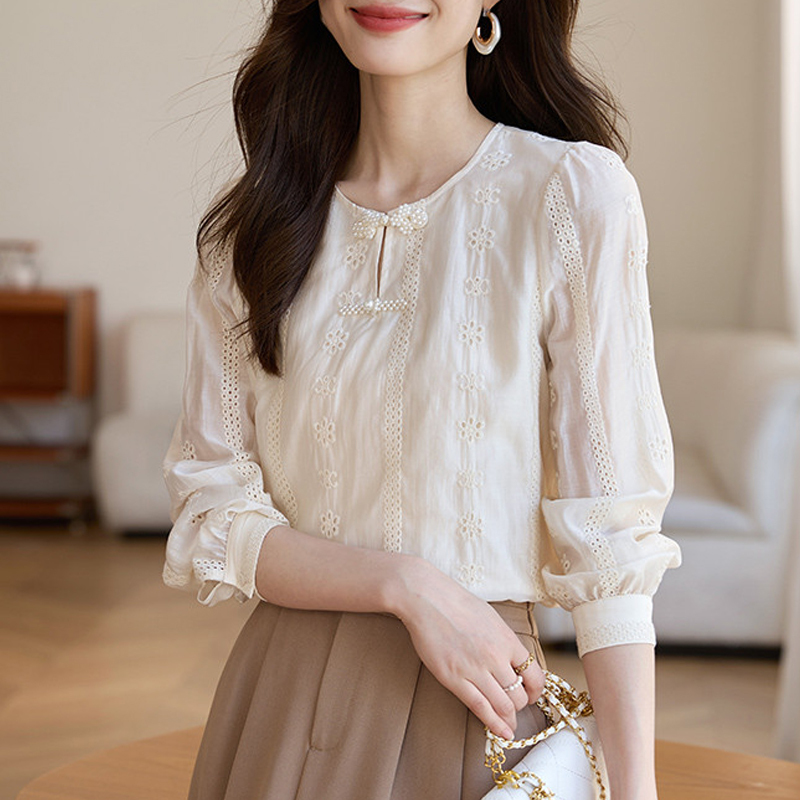 Commuting light, sophisticated style, French niche apricot color, new slimming blouse