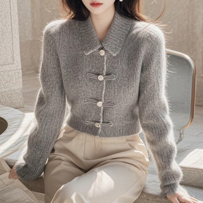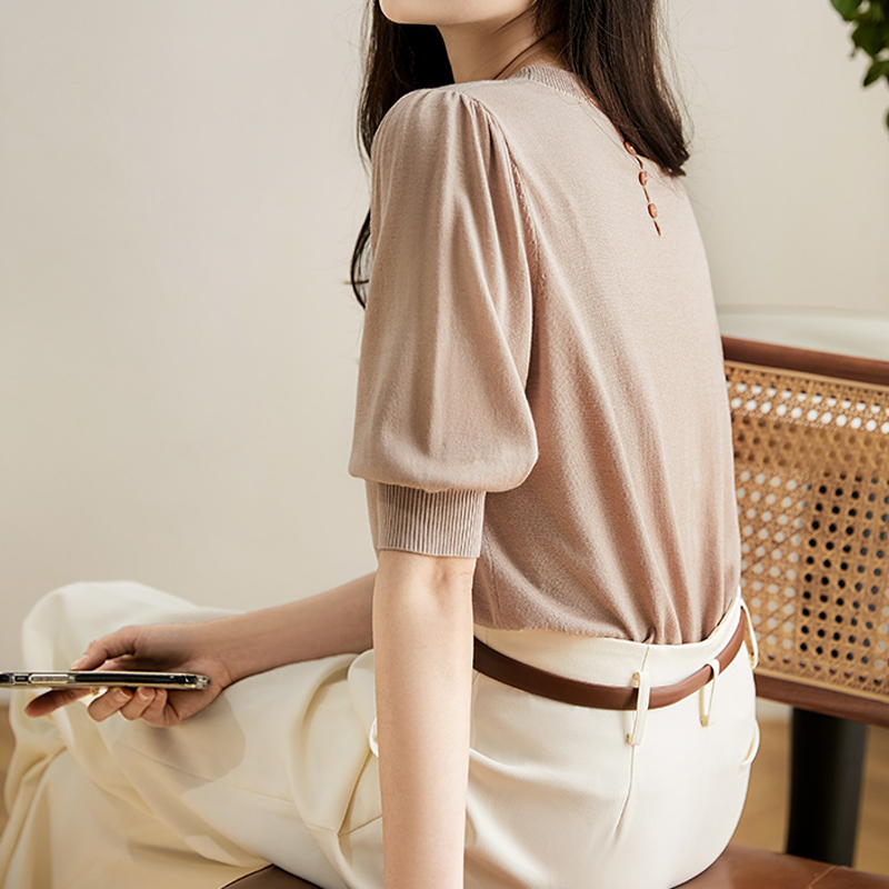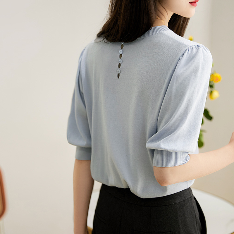 Lantern sleeve solid color temperament vertical collar knitted dress
