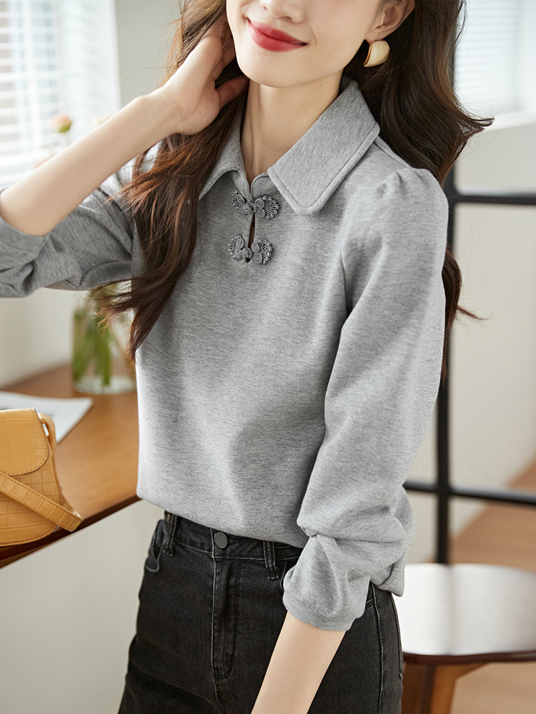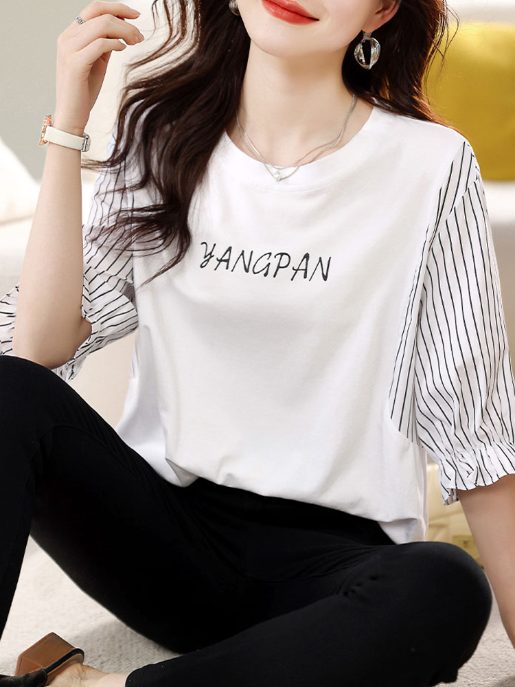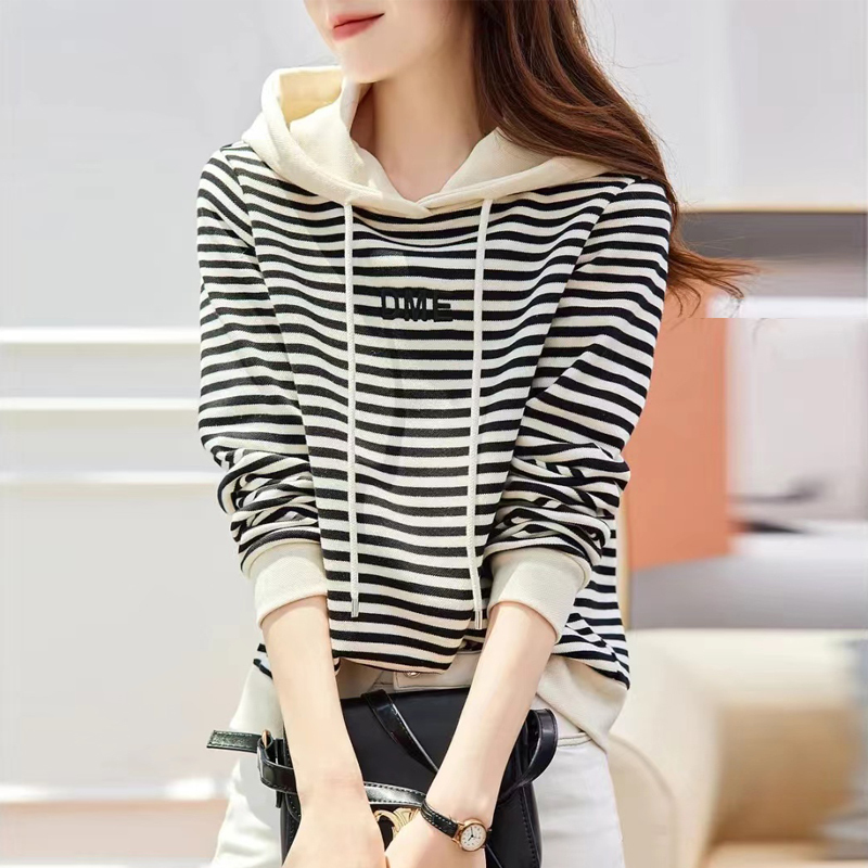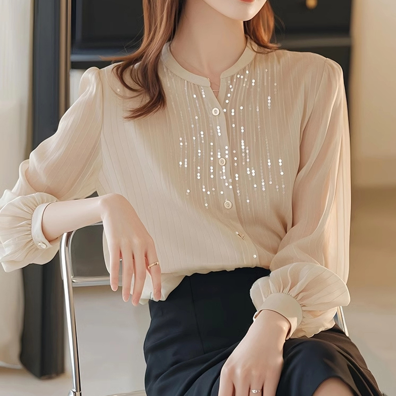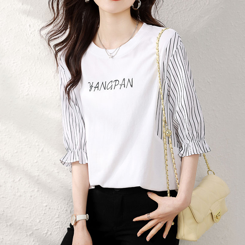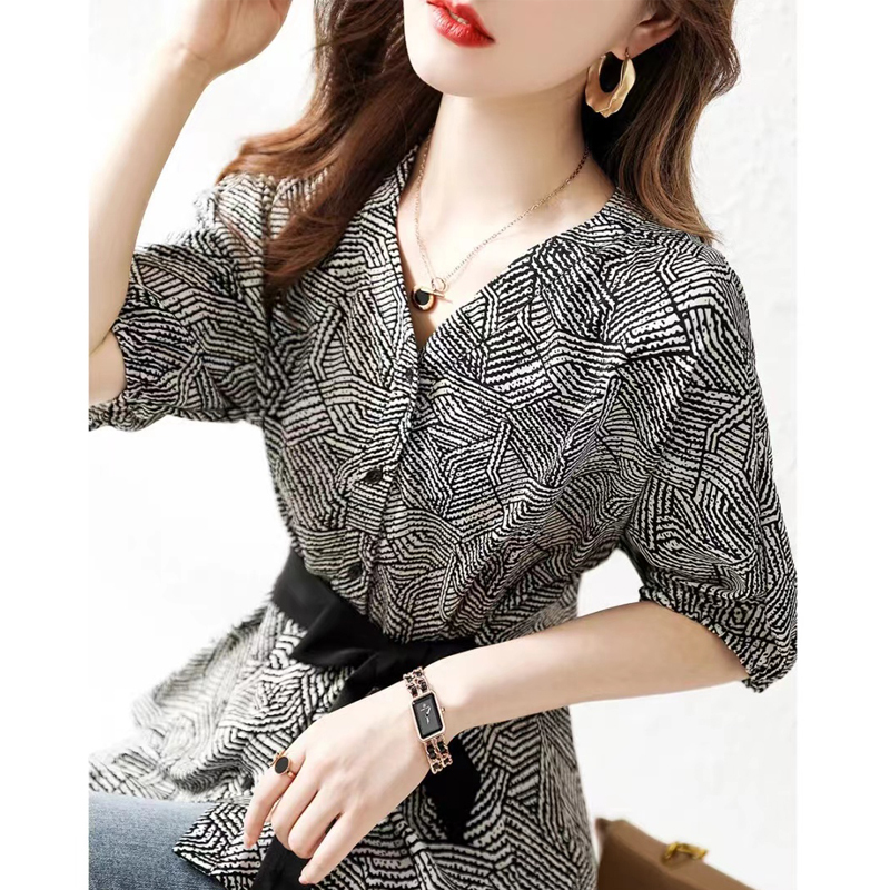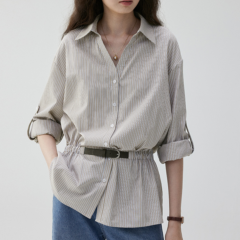 Pulled waist pinstripe loose commuting sleeves women's shirt