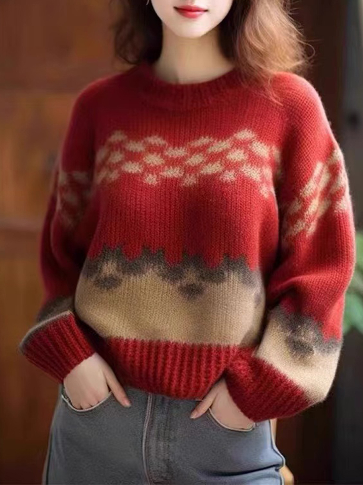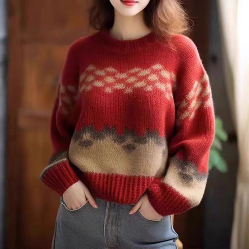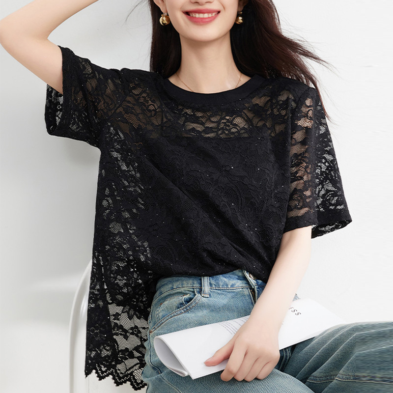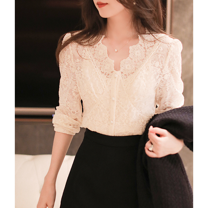 Lace wavy V-neck long-sleeved knitted bottomed shirt