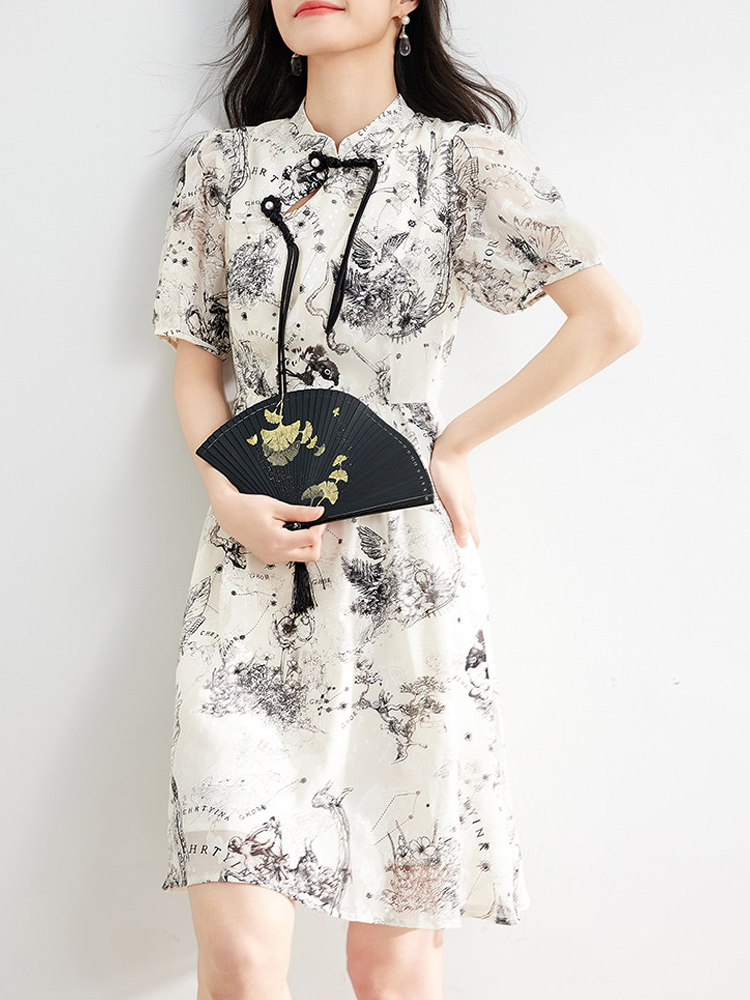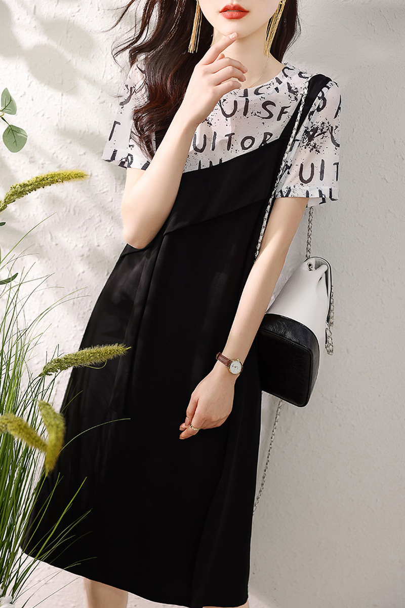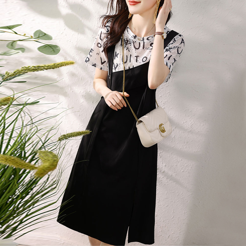 Waist, high waist, mesh stitching, large swing skirt, contrasting square collar dress