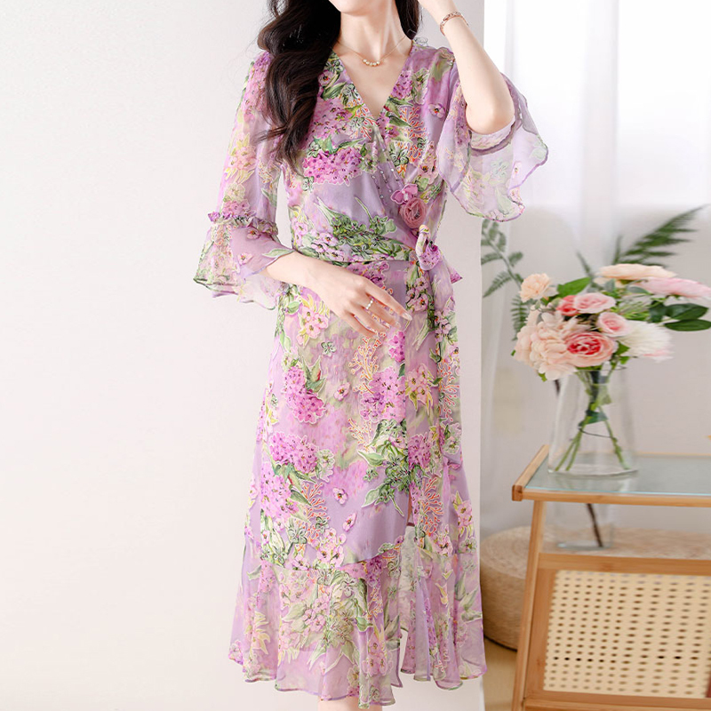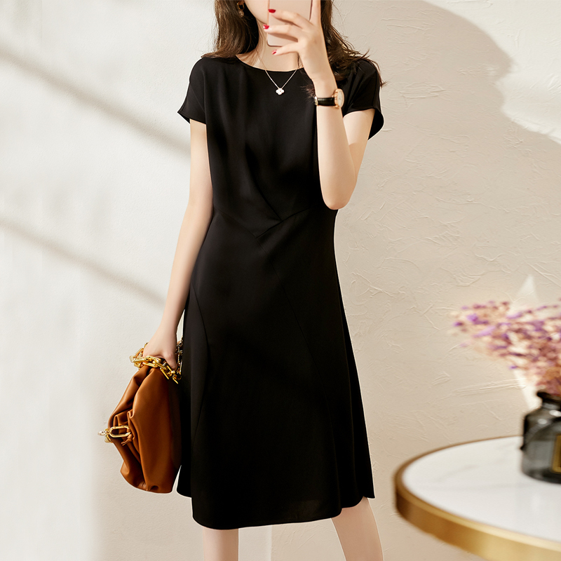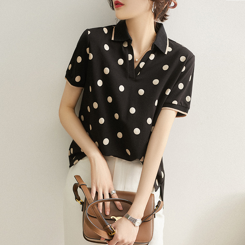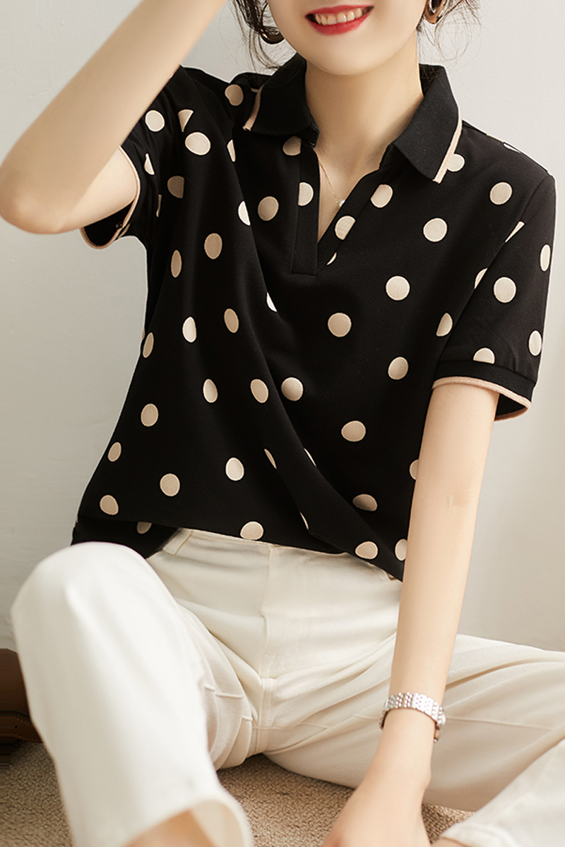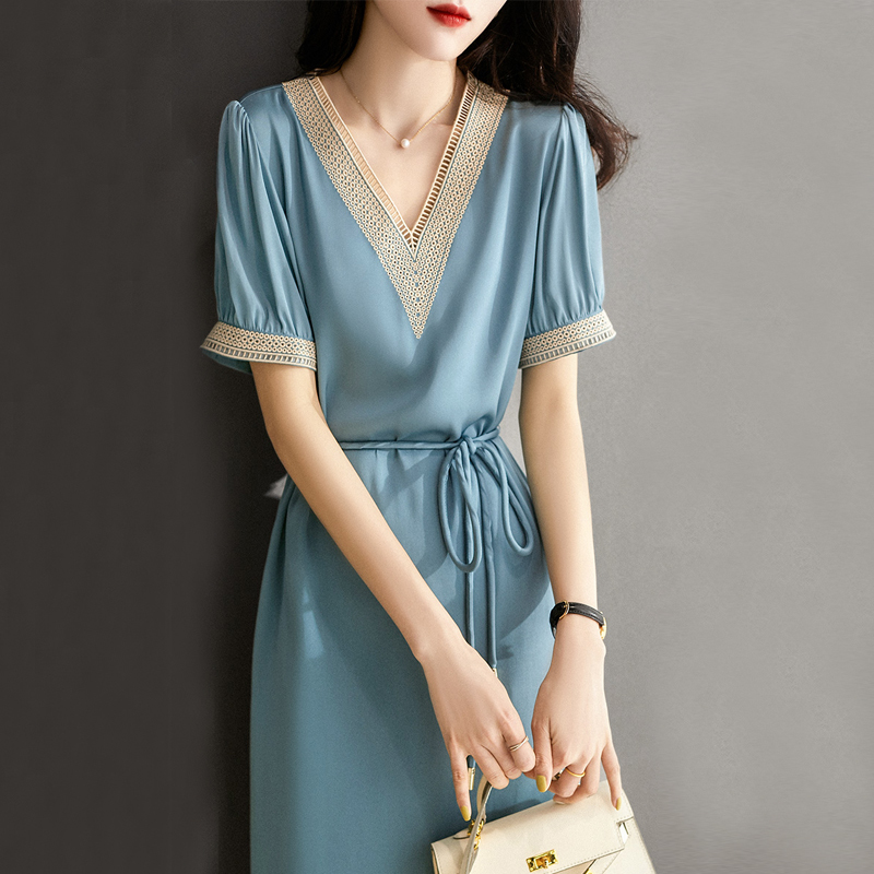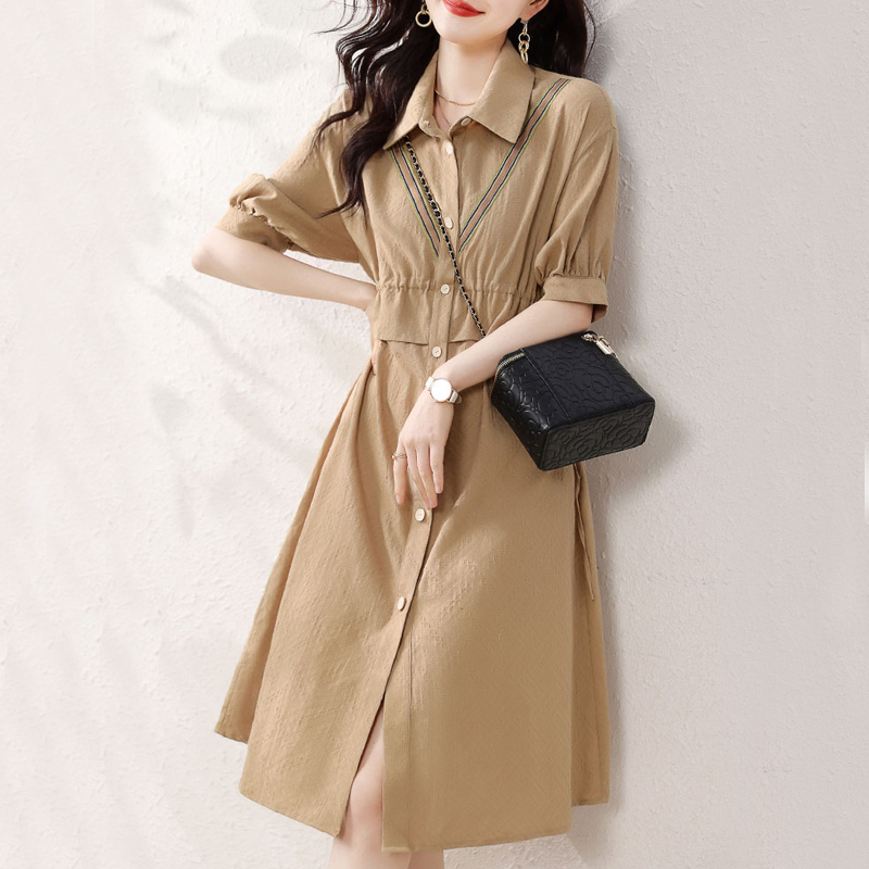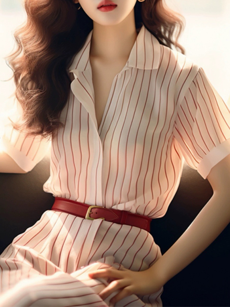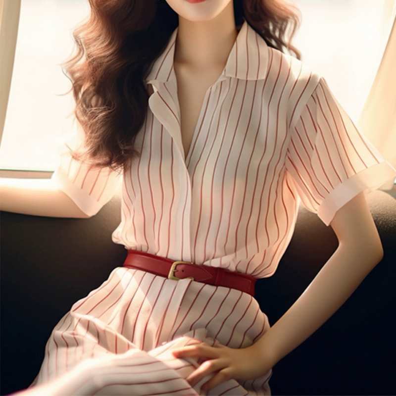 Summer commuting vertical stripe dress lapel short-sleeved dress