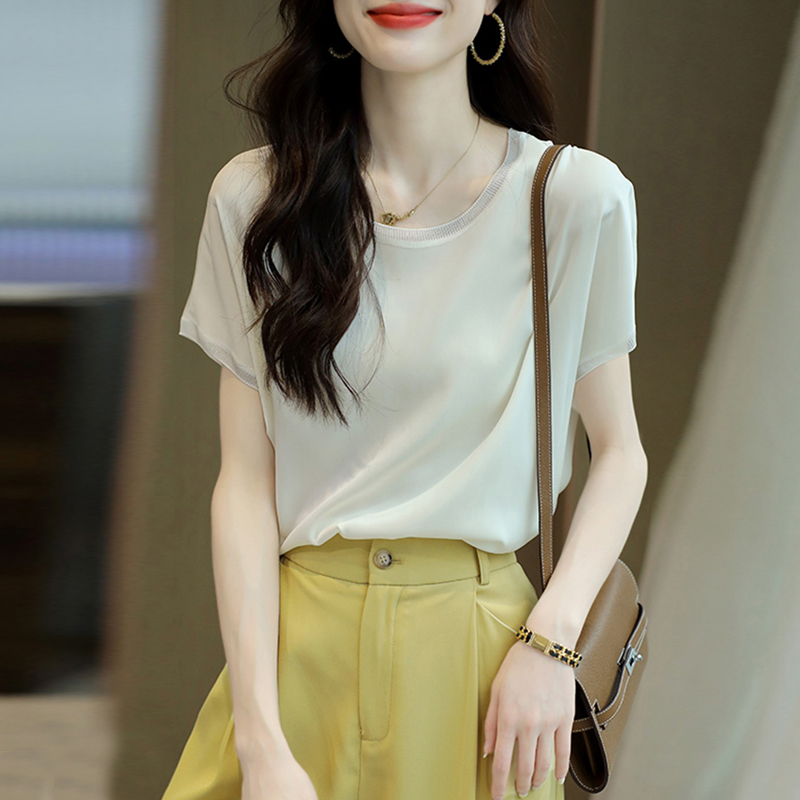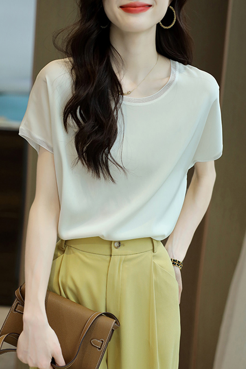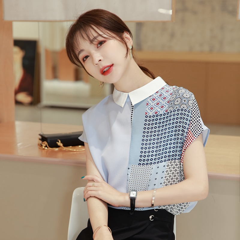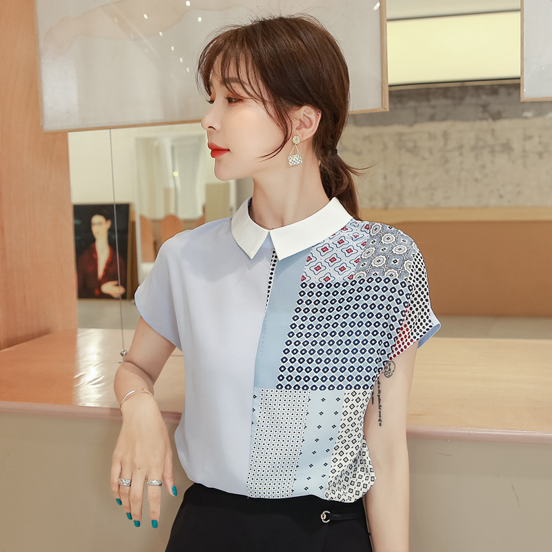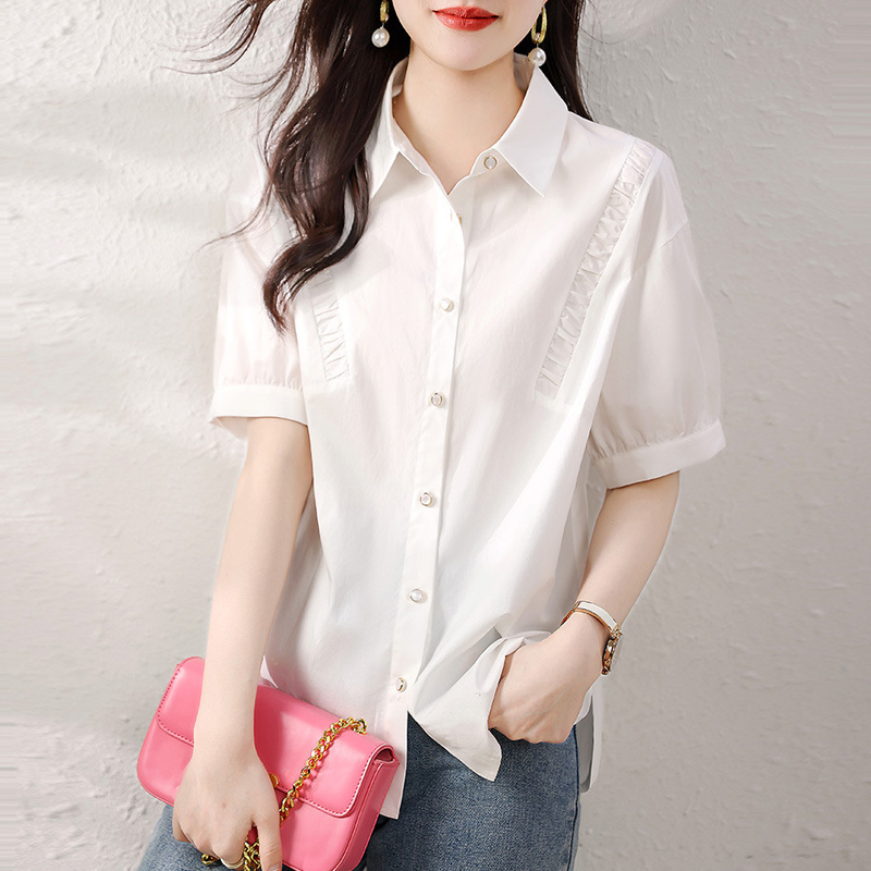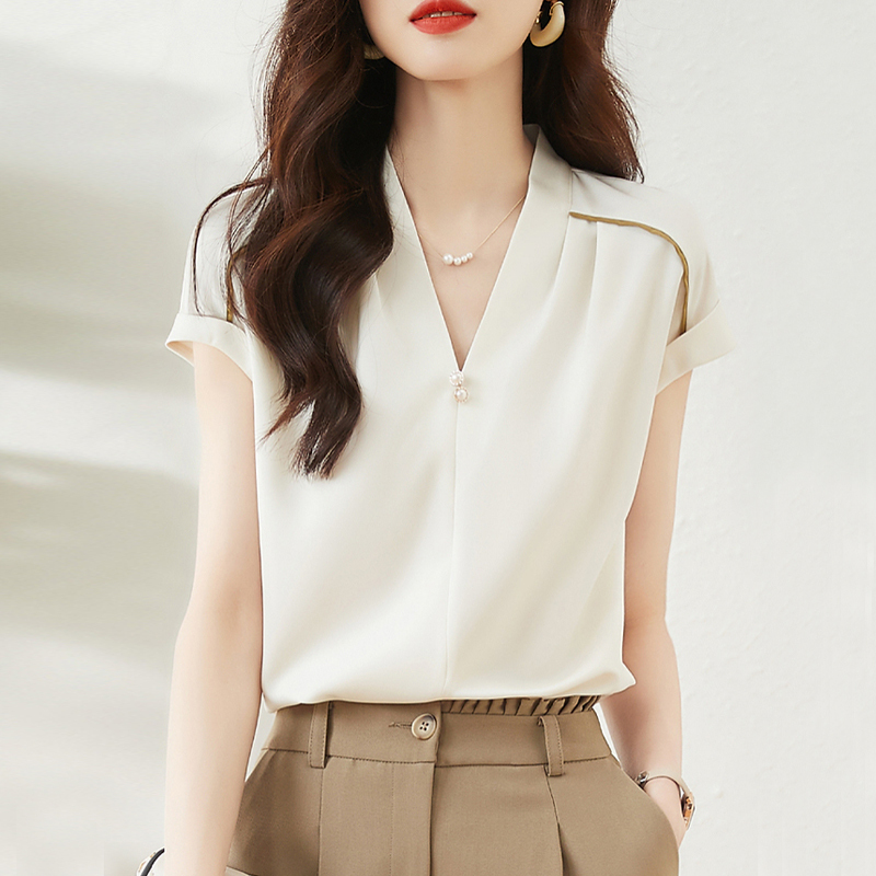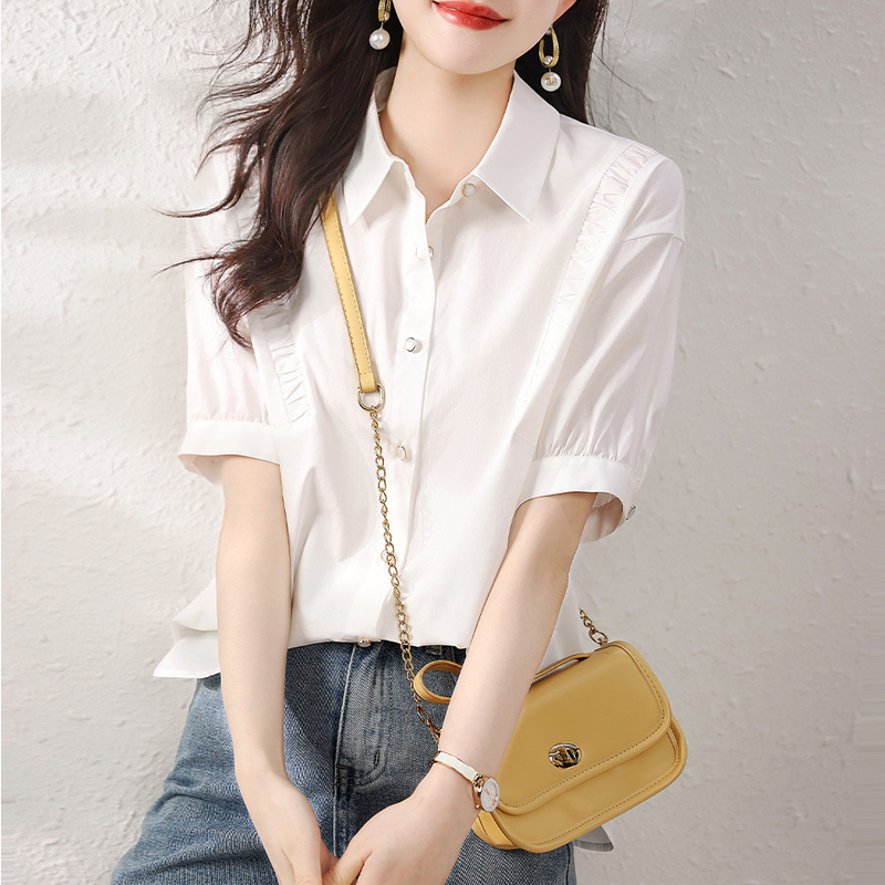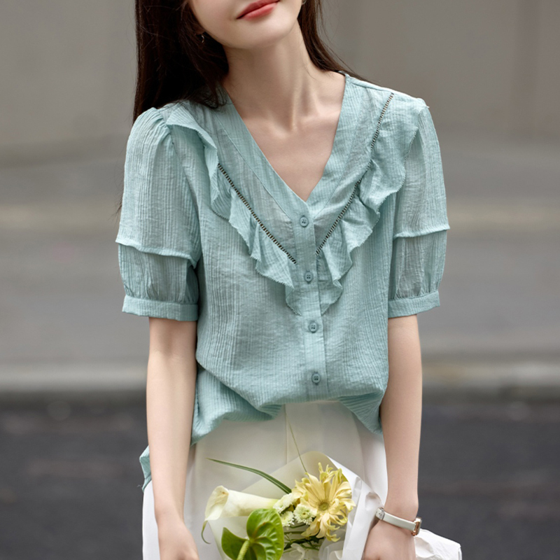 Ruffled V-neck texture wrinkled short-sleeved blouse