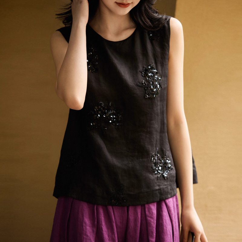 Vintage black heavy work sequined beaded embroidered sleeveless top