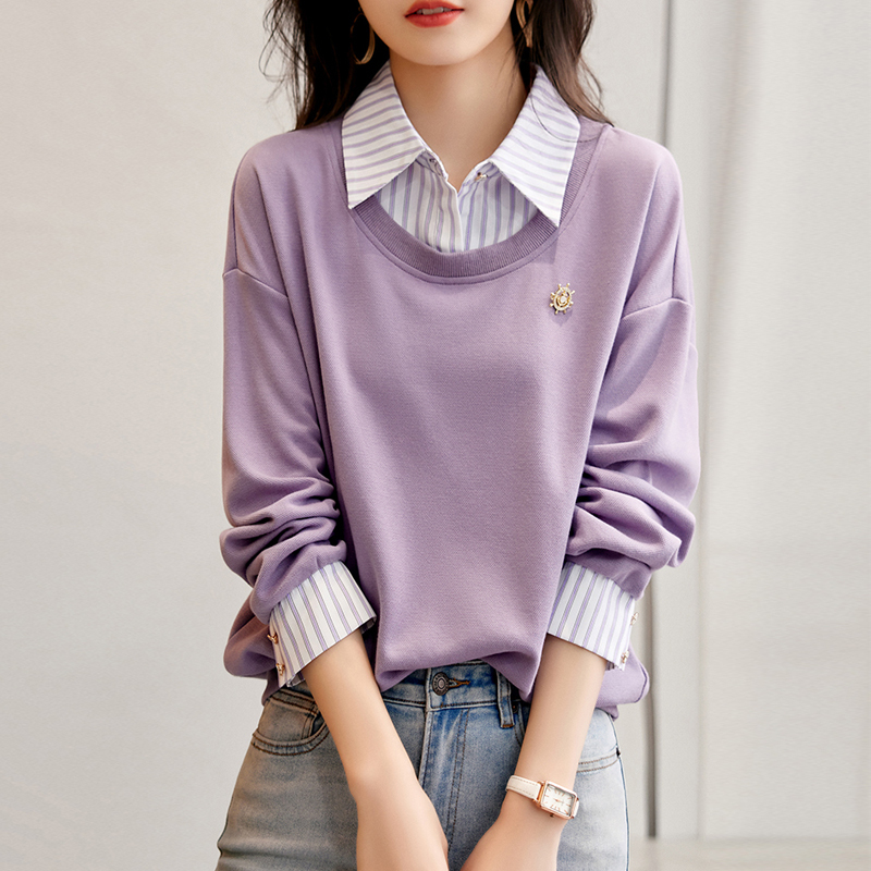 Age-reducing splicing fake two-piece hoodie