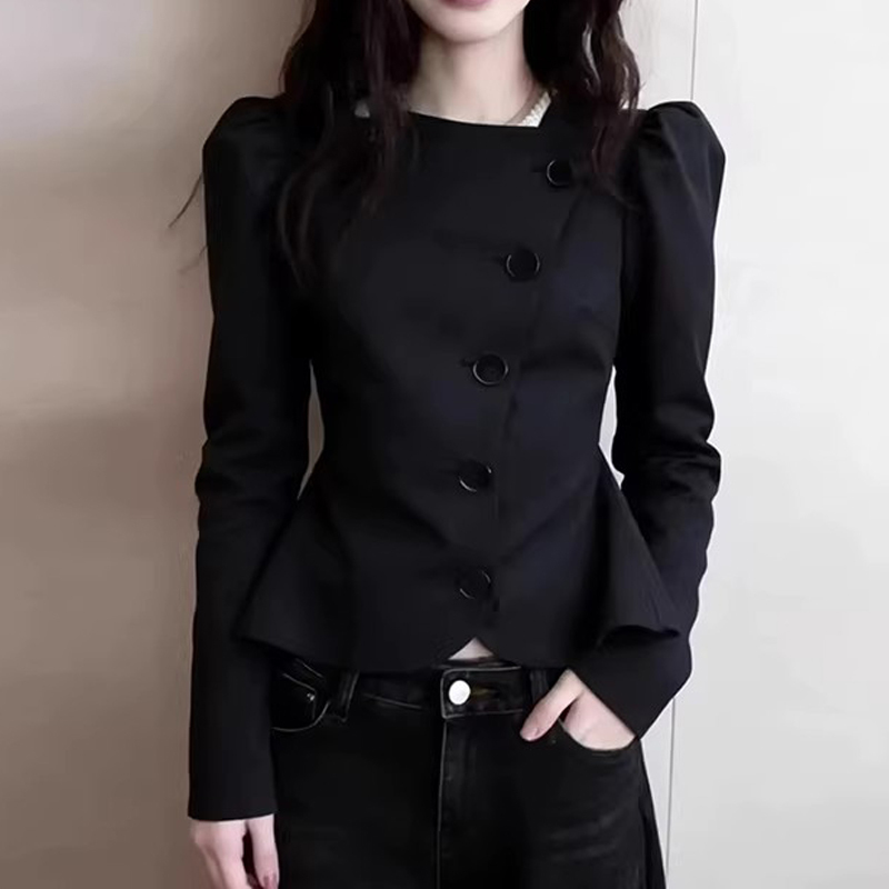 Black high-end light luxury asymmetrical short sleeve women's shirt