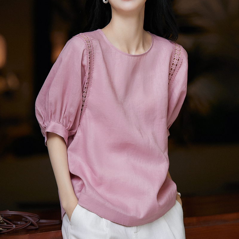 Breathable and breathing peach pink pullover short-sleeved shirt