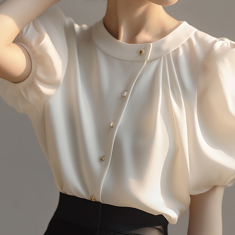 Design style loose short-sleeved blouse with oblique placket and button buttons