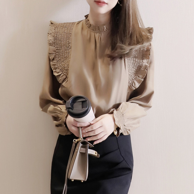 French court style wrinkled long-sleeved shirt with lotus leaf auricula