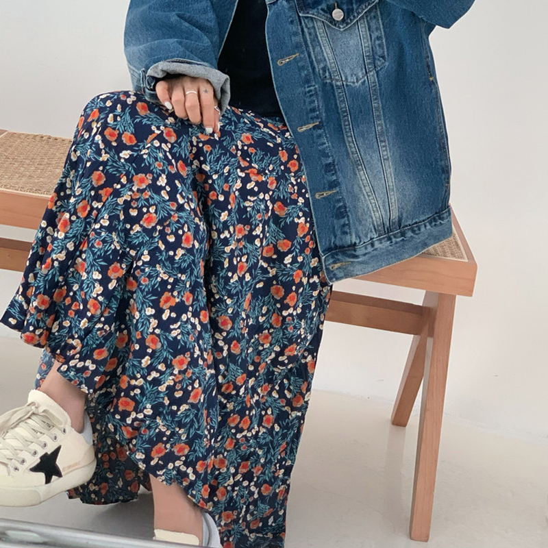 Retro color medium length skirt A-shaped skirt
