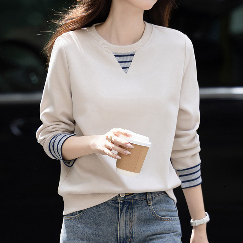 Rice-white lazy style contrast color splicing loose pullover autumn and winter sweater