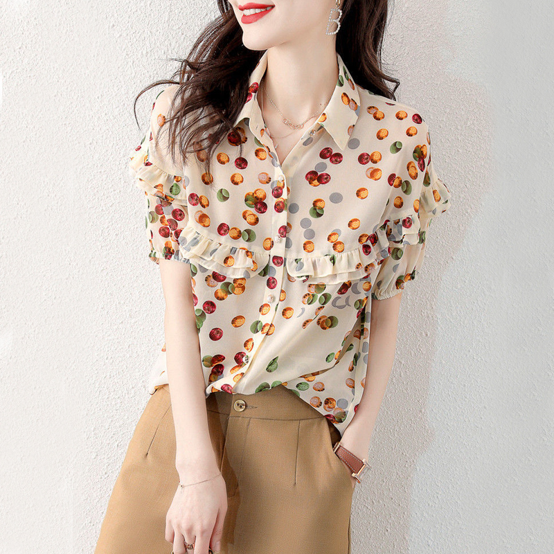 Short-sleeved shirt with stitching wave points on the edge of aging wood