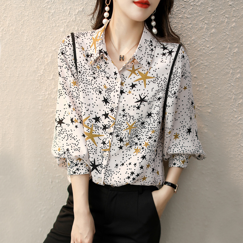 Simple leisure star pattern printed long-sleeved blouse