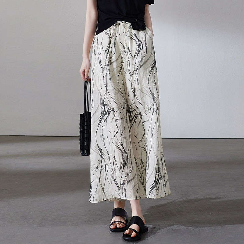 Summer ink-printed loose women's wide-leg pants and nine-quarter pants