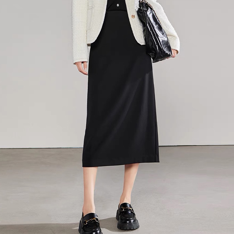 Temperament commuting high waist split A-line skirt mid-length skirt
