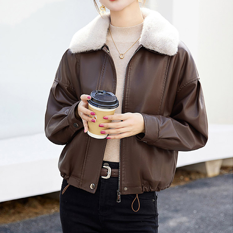 Temperament commuting pu short women's autumn and winter coat top