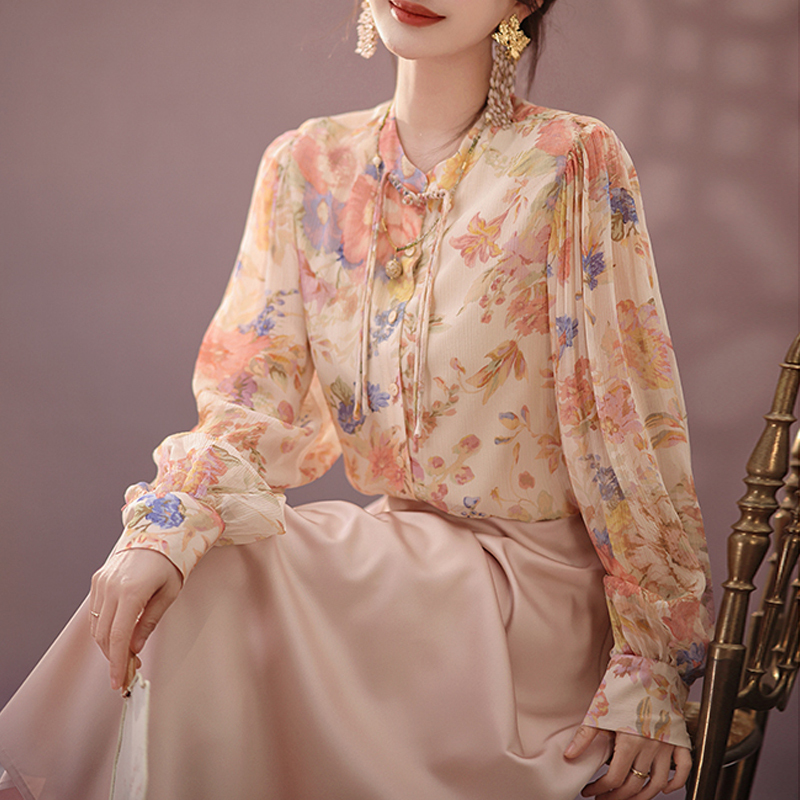Vintage pink loose long-sleeved blouse